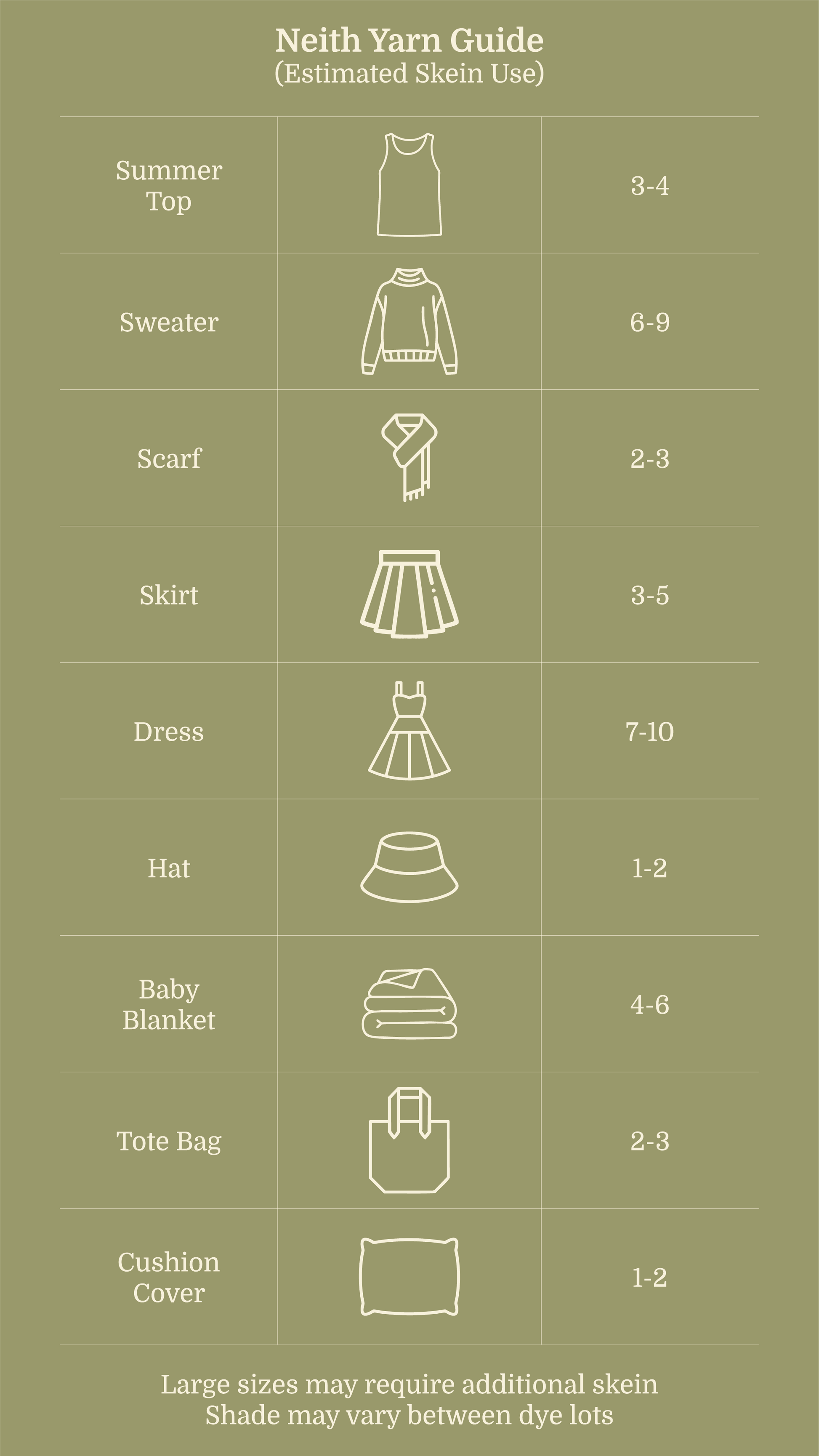 100g / 3.5oz skein DK weight — for those who love cotton’s authentic natural beauty, or crafters who wish to explore their own dyeing.